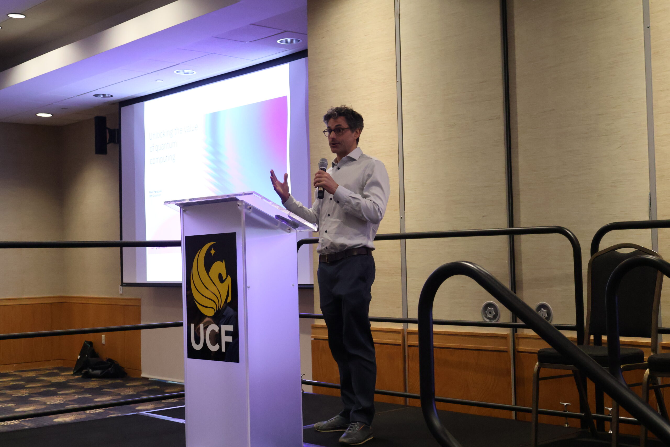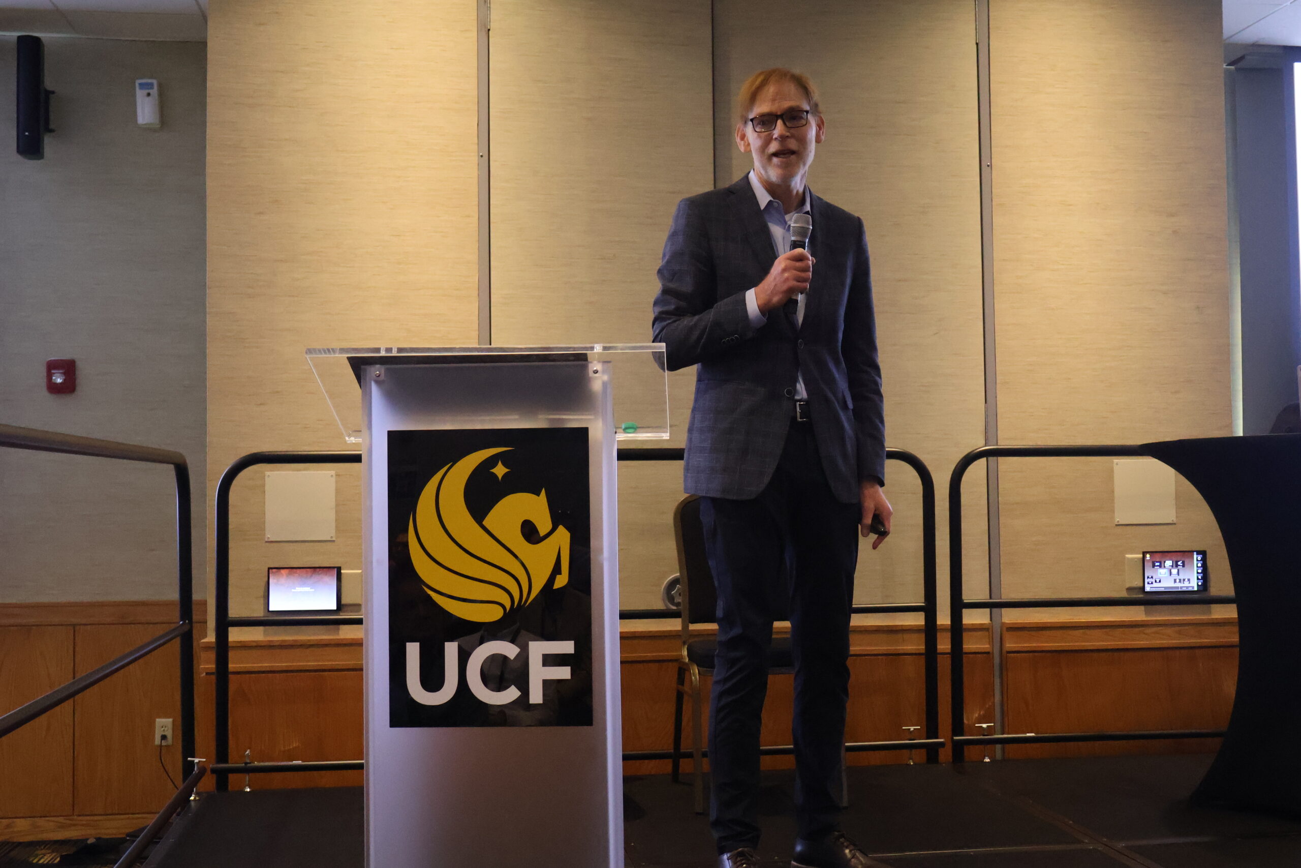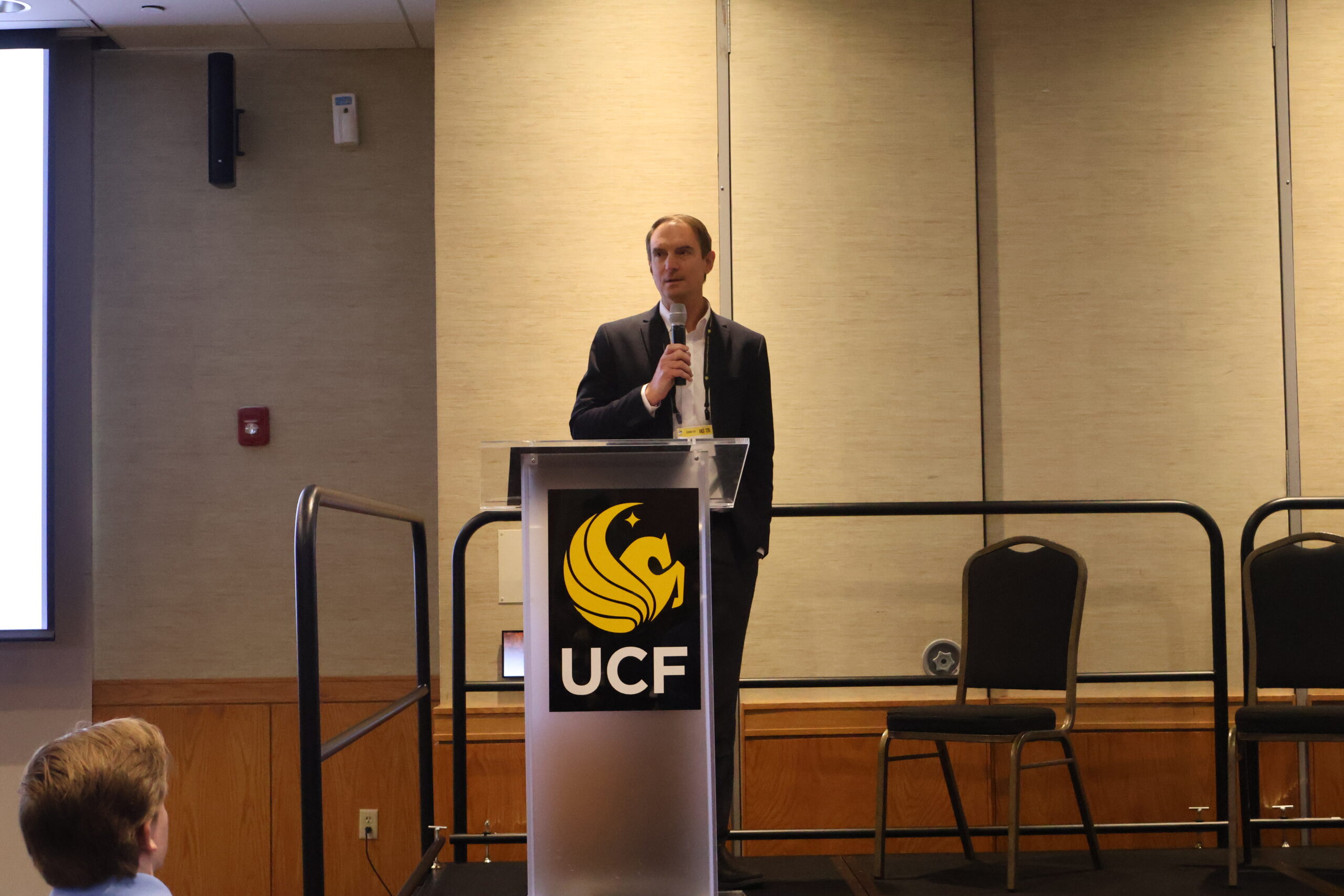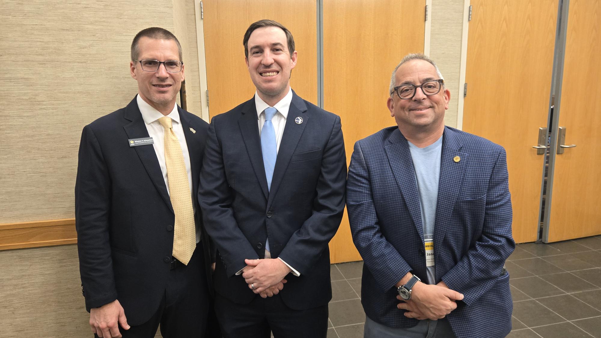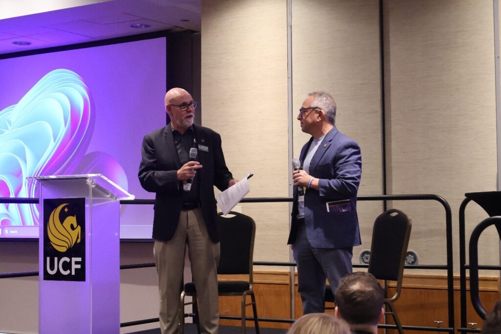 On Friday, after a warm welcome from UCF Vice President for Research and Innovation Winston Schoenfeld, CREOL Dean David Hagan gave an overview of CREOL, highlighting recent faculty additions, construction progress on the upcoming new teaching lab, the launch of CREOL’s Teacher and Student Ambassador Programs, and the plans to continue growing the college’s enrollment. Talks and presentations included: