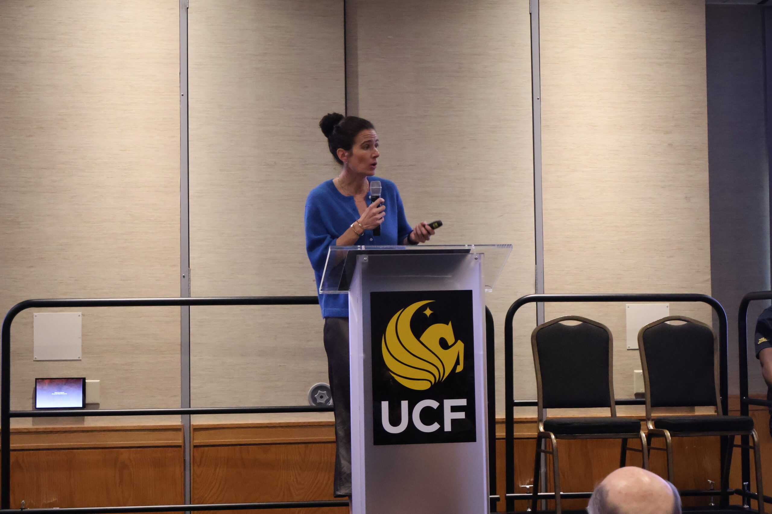 Additionally, 29 students debuted CREOL’s new Student Poster Elevator Pitch Competition, during which they each had 45 seconds to present their posters to the conference in a lightning-round style session.