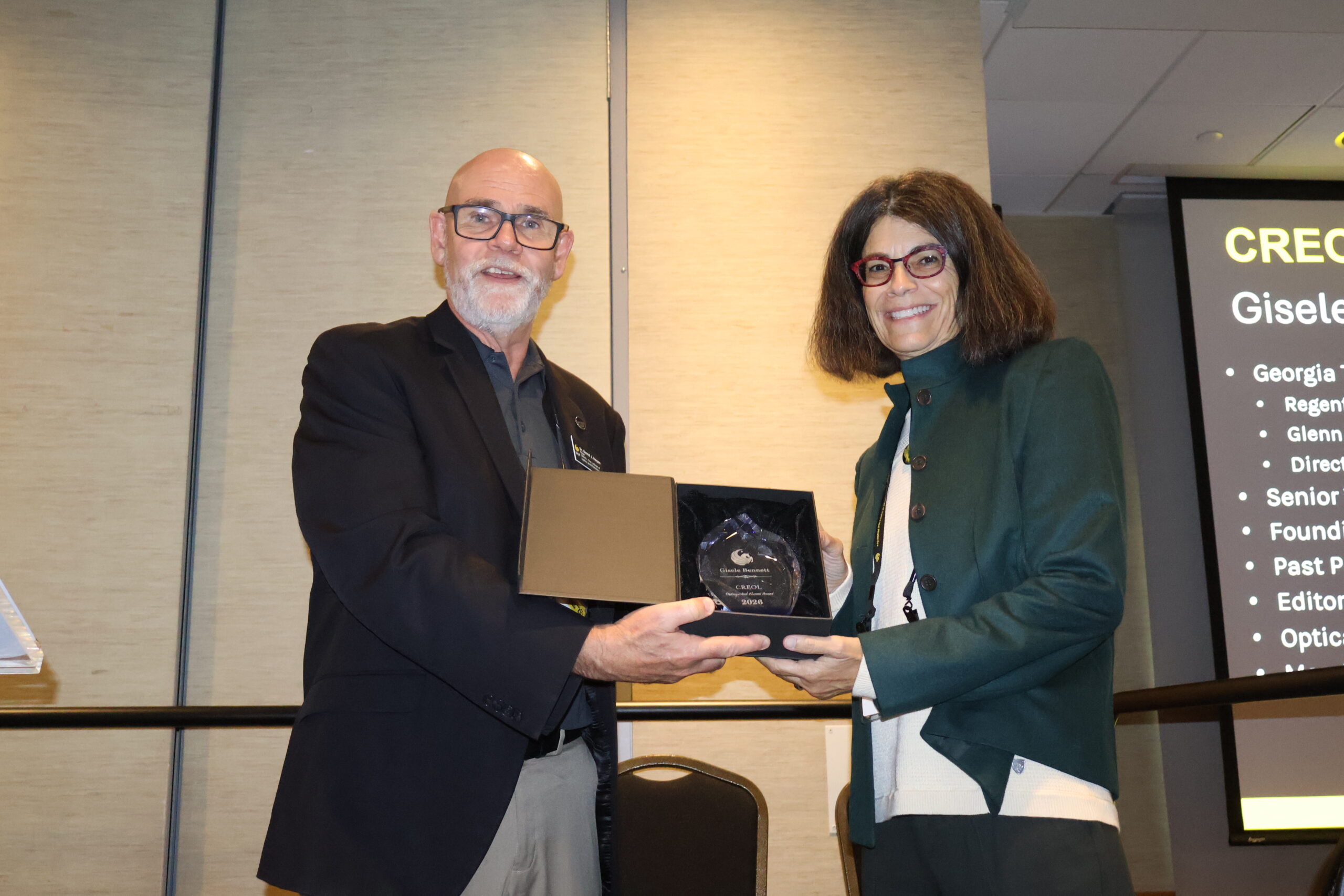 The tech conference portion of the Symposium concluded with the recognition of Gabriel Skowronek as the winner of the poster competition, 2025-2026 Student of the Year Swati Bhargava, and 2026 Distinguished Alumnus Award Honoree Gisele Bennett ’87 ‘89MS.