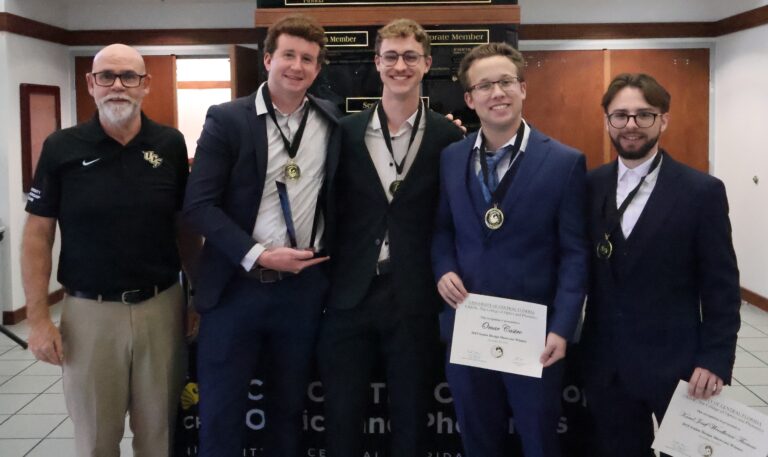 The team was advised by CREOL Assistant Professor Yannick Salamin, ECE Associate Professor Wei Sun, ECE instructor Mark Maddox, and senior CS lecturer Mark Llewellyn. They took home medals and will share a $500 prize.