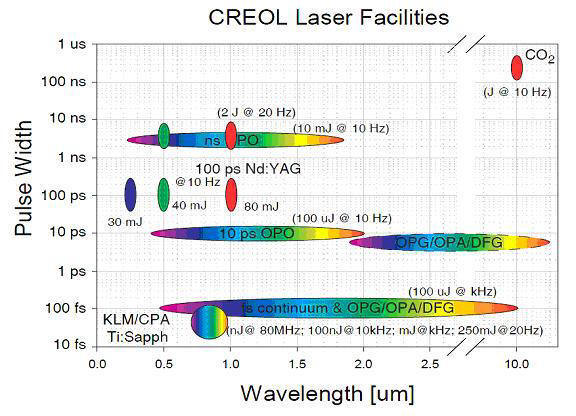 The NLO group’s 5 laboratories are equipped with state-of-the-art facilities specifically designed for nonlinear optical research. The laser systems cover 6 orders of magnitude in pulsewidth and covers the spectral range from the UV to the mid infrared at 18 microns. The capabilities in the femtosecond, picosecond, and nanosecond temporal regimes use parametric conversion for their tunability. For example, the femtosecond lab has three optical parametric generators pumped by a femtosecond laser. Other major equipment includes a femtosecond pumped multi-photon confocal microscopy system in the 2PA Microscopy Lab and a spectrofluorimeter with capabilities to measure one and two photon fluorescence and anisotropy spectra located in the femtosecond lab.