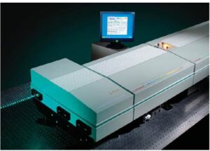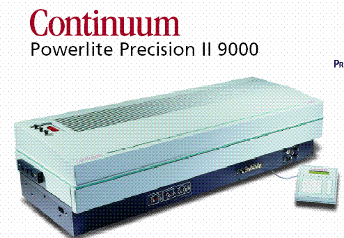 The laser system is a Continuum Powerlite 9010, which is Nd:YAG, Q-switched by a Pockels’ cell producing a 7ns (FWHM) pulsewidth operating at a 10 Hz repetition rate. It is injection seeded with a diode laser to maintain a single longitudinal mode. This laser can be frequency-doubled to 532nm using a Type I KDP crystal, which reduces the pulsewidth to 5ns (FWHM), or frequency-tripled (355nm) using a second Type I KDP crystal for pumping an optical parametric oscillator (OPO).