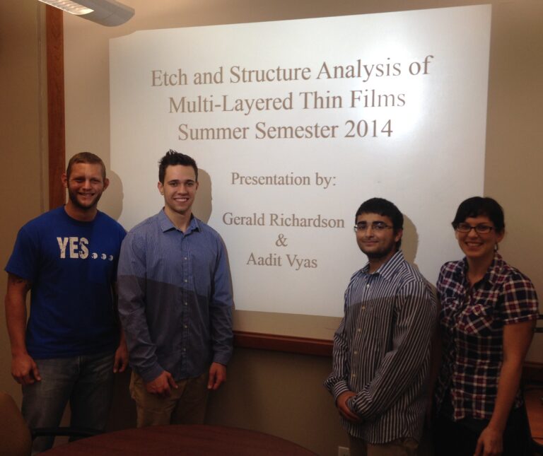 Undergraduate Amanda Dupuy is a Student Mentor Academic Research Team (SMART) fellowship recipient and the newest member of the NPM Group. Amanda is investigating methods for electroless metallization and studying how the material processing conditions affect the nanoscale morphology of the deposited metal.