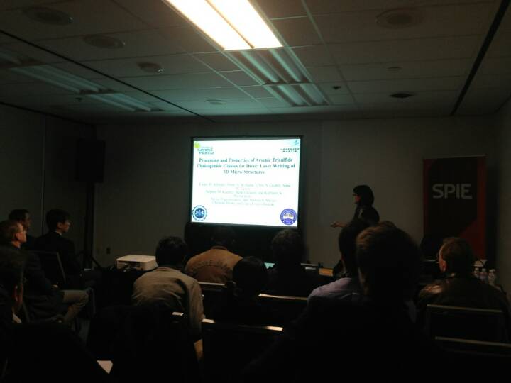 Dr. Casey Schwarz presented her research titled “Fabrication and Characterization of Micro-structures Created by Direct Laser Writing in Multi-layered Chalcogenide Glasses”. Both presentations were very well received.