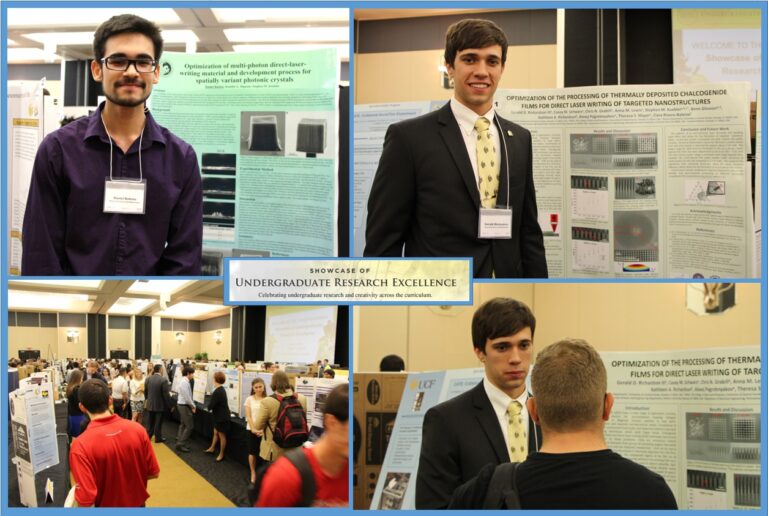 Undergraduate Nick Kosan gave a poster presentation titled “Controlling Light with Spatially Variant Photonic Crystals and Waveguide Structures” at the UCF 2016 Showcase of Undergraduate Research Excellence (SURE).