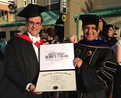 The Order of Pegasus award is the most prestigious and significant award a student can attain at the University of Central Florida and recognizes a student’s exemplary performance by UCF bachelor’s degree students in the areas of academic achievement, outstanding university involvement, leadership, and community service. It was Gerald’s dream to win this award since he learned of it as a UCF freshmen. He has no doubt made his mark at UCF through his extraordinary academics, research, and community service and will always have a presence here in more ways than one (a plaque is added to the wall of the Pegasus Lounge honoring the inductees and includes their names and a group photograph).