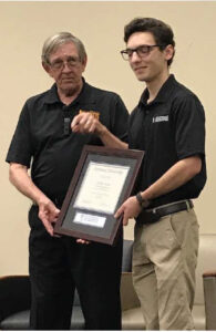 Nick was one of two UCF students selected at UCF to receive a 2017 Astronaut Scholarship. Nick (at right) was presented the award by Astronaut Bob Cabana (at left). The Astronaut Scholarship provides $10,000 toward the costs of study in physics, astronomy, biology, chemistry, or mathematics. Congratulations, Nick!