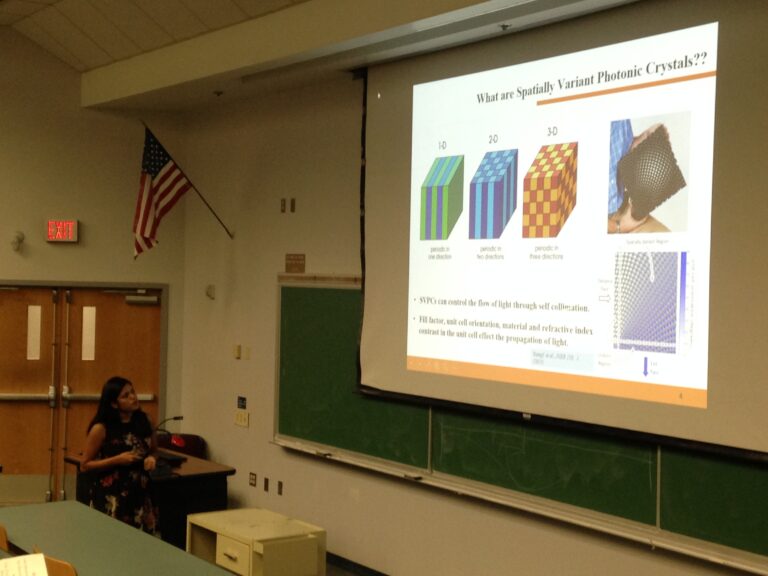 Jennefir Digaum presented his research titled “Polarization Sensitive Beam Bending using a Spatially Variant Photonic Crystal”.