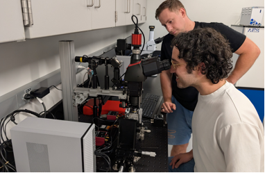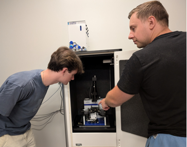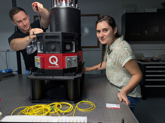 Built around a magneto-optical OptiCool® cryostat from Quantum Design™, our cryogenic spectroscopy suite allows multispectral characterization and imaging of optical materials and devices. Offering an automated cooldown and seamless temperature control through the range of 350 K to 1.7 K, the OptiCool® platform also has the low vibration and stability that is critical to optical measurements.